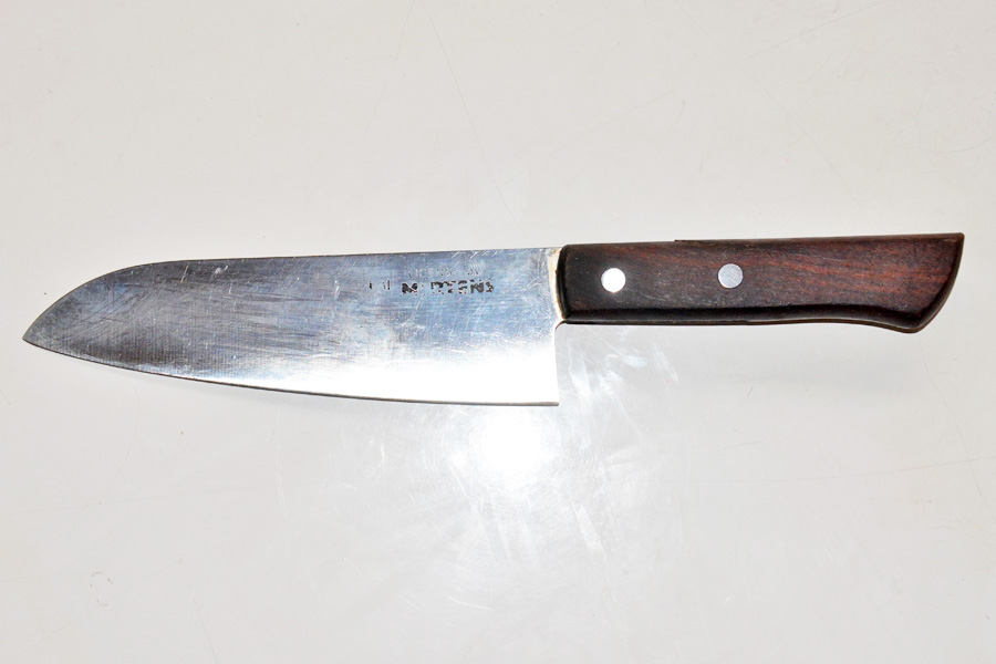 お手軽に研ぎが出来るのが砥石で、金物店・ホームセンターで入手できます。用途を話してお店の方に選んでもらってください。一般的に砥石というと専門的に感じてしまいますが、包丁・はさみ(紙切りはさみもOK)など研げますのであると便利です。包丁などをお使いの時に、例えばトマトなどでは切れ味が落ちると、刃が喰いつかず滑ってしまい危険です。また奇麗に切れると料理の見栄えも良くなります。必要な道具は砥石のみで、写真の物は荒目・中目両面の物です。 研ぐ箇所と研いではいけない箇所 トップへ