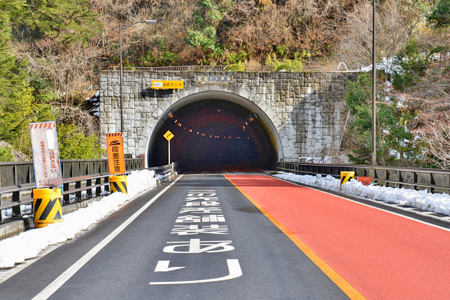 この先が「奥多摩駅入口」の信号で、直進するとJR青梅線の奥多摩駅です。 愛宕トンネル出口(入口) 下のマップはクリックで1899x462pixに拡大します。 トップへ 平成10年(1998)3月に開通した1043mの愛宕トンネルを出ると青梅街道の愛宕大橋の信号に出ます。城山トンネルより17年も前に開通しているので、出入口の壁面には黒い汚れが上から垂れるように付いています。更に先に進むと愛宕大橋の信号に出ます。この交差点を左折すると奥多摩湖方面へと繋がり、右折するとJR青梅線の終点である奥多摩駅につながります。 |