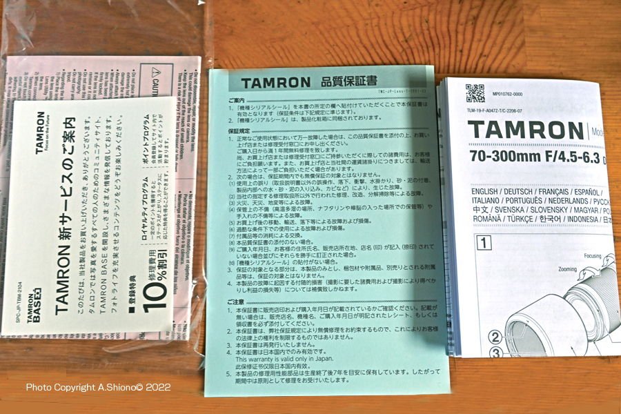このレンズの外観は、各所に自然に丸みが付けられていて滑らかさを感じます。そしてレンズのフードのつなぎ目も丸みがありデザインに新鮮さを感じます。レンズ本体のズームリングとレンズ胴鏡の段差が少ないのも好感が持てます。 タムロン初のZレンズ