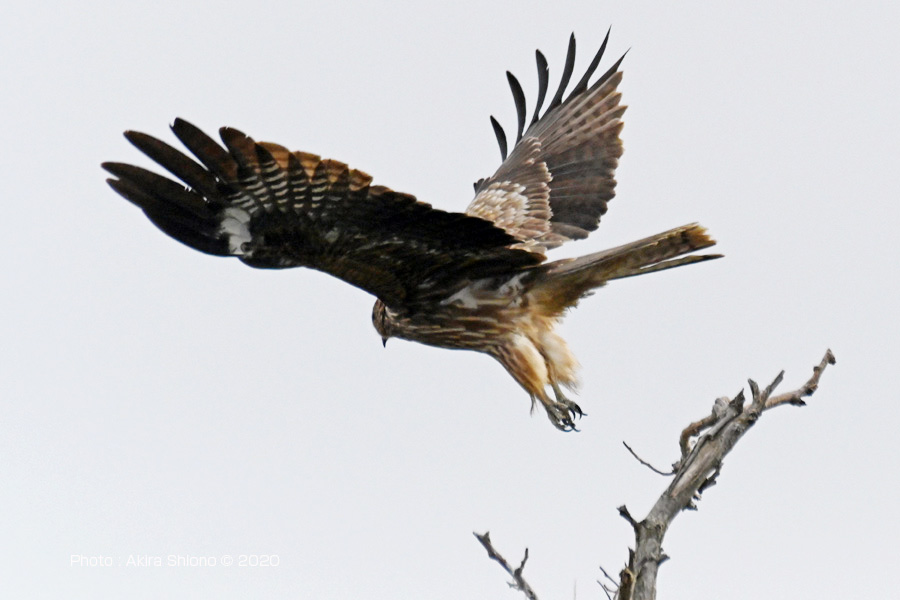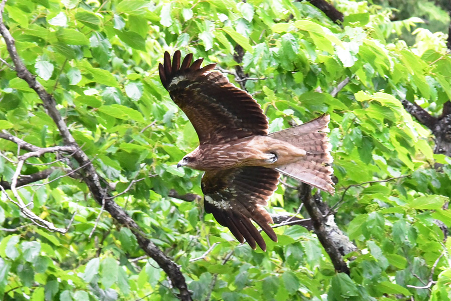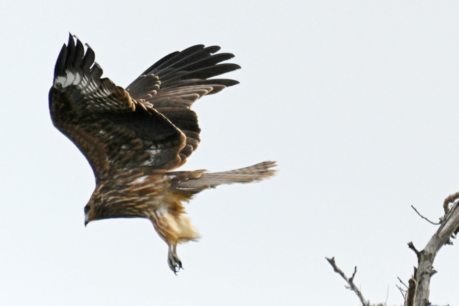トビは枯れ枝から飛び立ち飛び去って行きました。 撮影:NIKON Z6II+TC-20EII+AF-S200-500mmE5.6 三脚使用 自然の多い場所で目にするトビ トップへ