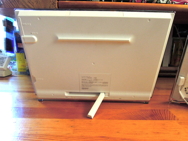 少し前に、Wi-Fi内蔵でDLNA対応のブルーレイDIGAと『お部屋ジャンプリンク』で繋がるSV-ME7000ポータブルテレビを購入し、後にディーガモニターUN-DM10C1を後に購入ました。持ち運べるテレビとしてとても便利でしたが、UN-DM10C1のページでも書きましたが、持ち運び中にチャンネルが変わってしまうなど、使いにくい箇所が多々ありましたので、このUN-JD10T3のモニター部分がどのくらい変わったのか、このページでお伝えいたします。 地デジ/BS/CSチューナー+500GB HDD付き トップへ このプラーベートビエラは10V型は、いわゆるHDDレコーダーがついているワイヤレスモニターというタイプです。この写真に写っている本体のサイズは、169mm×43mm×174mm(突起部除く)となっています。簡単にいうと横幅と奥行きは大人の手を広げたより、少し小さい程度です。録画機能としては、500GBのHDDが内蔵されていますので、5倍速ですと約225時間。3倍速で約135時間録画が出来ます。受信放送は普通のHDDレコーダーと同じで地デジやBS、CSと接続すれば観ることができます。USB端子は外部HDD接続用に利用できます。 進化したモニター トップへ UN-DM10C1(右写真)はなかなかいいモニターですが、電源ONのまま持ち運ぶことは苦手です。比較してみると左のプライベート・ビエラUN_JD10T3は持ち手の形状、スタンド、裏パネルのフチの形状が改良されています。持ち運びの時に持つ部分の引っかかりがよくなりました。 左の写真はスタンドを横から見た絵ですが、スタンドもSV-ME7000の形状に近くなりプレートを引き出すタイプになりました。音質向上のためにスピーカー部分に変更が加えられて厚みが出ました。厚みが出た分でしょうか薄く作られていて、補強のステーが見えます。 イヤホンカバーがある裏パネルを見てみると、UN_JD10T3(左)の側面は面取りがされています。問題のふたは角度がついているので引っ掛からなくなりました。UN-DM10C1(右)は引っ込んでいるものの何回も外れたことがあります。浴室で利用する時には安心な構造です。 イヤホンカバーがある裏パネルを見てみると、UN_JD10T3(左)は面取りがされています。問題のふたは角度がついているので引っ掛からなくなりました。UN-DM10C1(右)は引っ込んでいるものの、移動時に指が触れて何回も外れたことがあります。浴室で利用する時に万が一の水没時には安心な構造です。