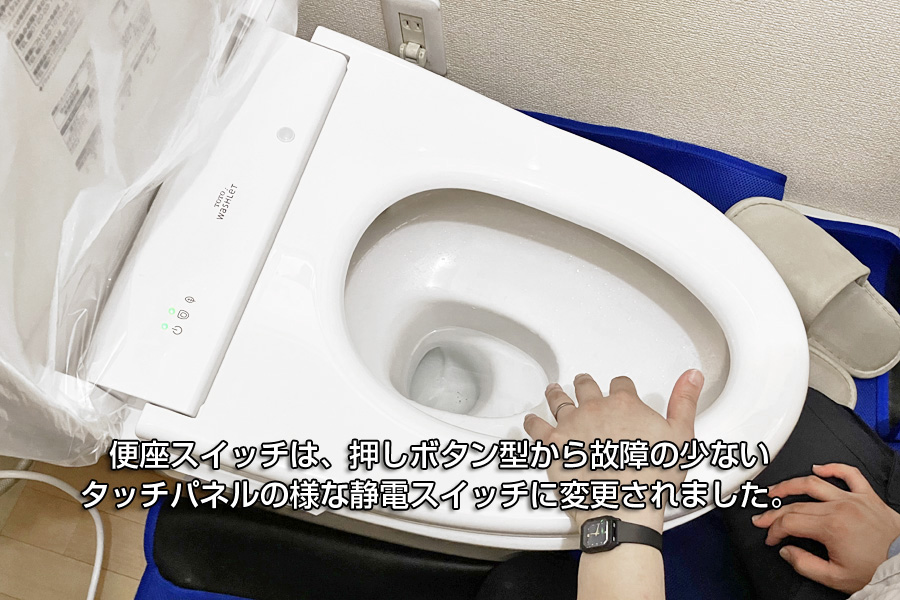 着座時にスイッチのON,OFFを行うスイッチが静電着座センサーとなり耐久性が向上しています。 【貯湯式 温水洗浄便座】