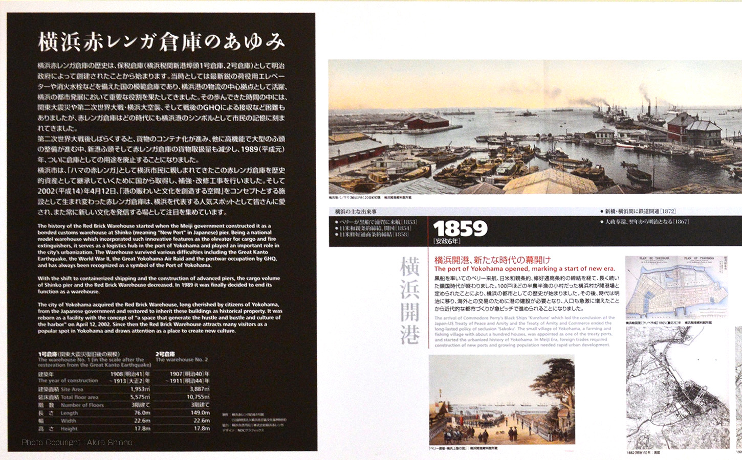横浜市中区/赤レンガ倉庫 移 動: 横浜赤レンガ倉庫の現在と歴史 横浜赤レンガ倉庫へのアクセス 近くに寄ってみて見る 公園側から見た赤れんが倉庫の景色 リンク: 山下公園 横浜赤レンガ倉庫 氷川丸 桜木町・日本丸 横浜赤レンガ倉庫の現在と歴史 トップへ ![]() 赤レンガ倉庫内に展示の「横浜赤レンガ倉庫のあゆみ」 (クリックで1450x900pixに拡大)