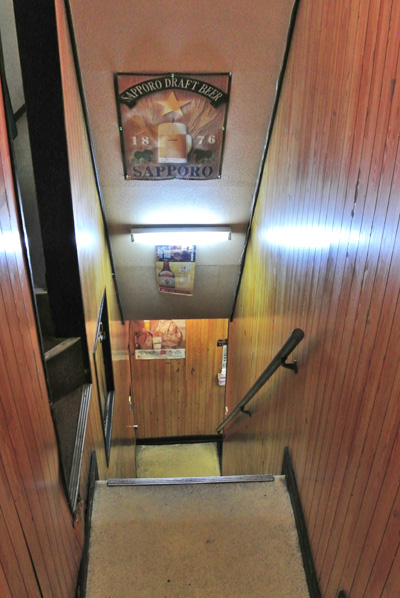 左−1階に続く階段 右−閉店のお知らせ>
