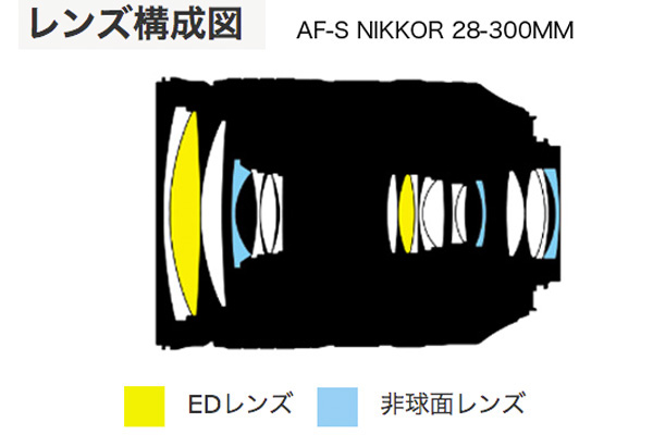 以前Fマウントの高倍率ズームレンズではAF-S NIKKOR 28-300mmを所有していました。このレンズは画質の満足度が低く、デザインの点では望遠端にすると伸びたその先に花形フードというかっこ悪いデザインで、そのうちに売却することになりました。この時から高倍率ズームレンズの印象が悪くなりました。 長さが変わるアウターズーム トップへ
