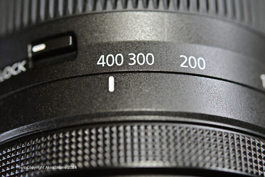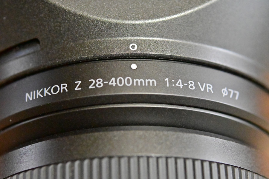 ![]() Z 28-400mm f/4-8 VR 200mm時の状態とズーム端の400mm ![]() Z7に装着した14.2倍ズーム Z 28-400mmVRとZ50II+Z50-250mmVR ズームの目盛りの区切り トップへ このレンズは14.2倍のズームレンズです。レンズのズーム位置の刻印は以下の様になっています。広角側は28mm,35mm,50mm,70mm,105mm,200mm,300mm,テレ端の400mmとなっています。 フルサイズZに装着 トップへ
