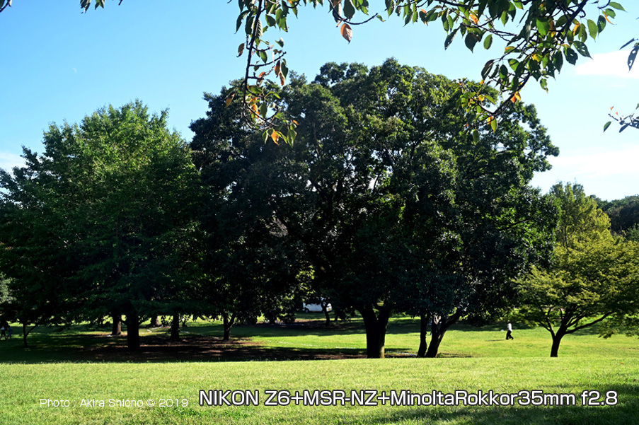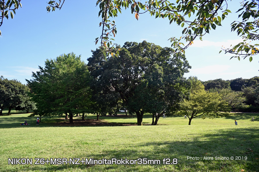 ![]() Z6にN.Z-M.SRを介してminolta MC-Rokkor24mmf2.8を接続した状態とレンズ ![]() 武蔵国分寺公園西本地区の芝生:NIKON Z6+N.Z-M.SR+minolta ROKKOR 24mmf2.8