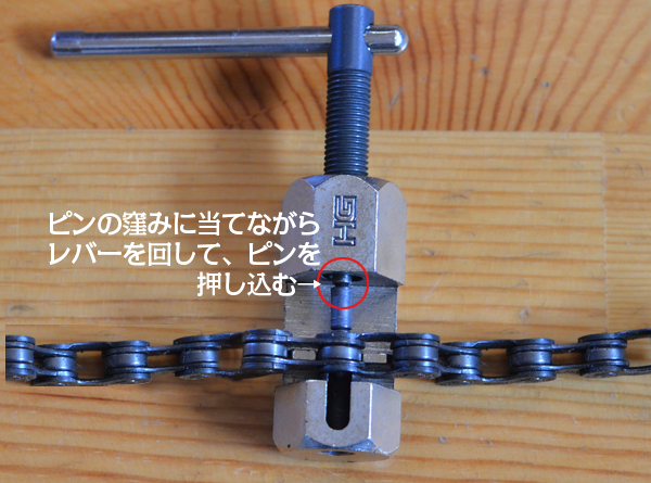 チェーン種類・カットと接続方法 移 動: チェーン状態のチェック チェーンの種類 ミッシングリンク使用 コネクティングピン使用 カット作業手順 内装変速機自転車の場合 チェーンコネクターでの交換作業 リンク: カバータイプのチェーン交換 内装3段メンテナンスと交換