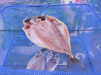 ![]() 水分を拭き取り、干し網で天気の良い日に日陰干しします。 漬け込みが終わったら、干す準備をします。 干物の完成です!さてお味は? トップへ 完成後はチルド室に入れ、翌晩に食卓に並べました。塩加減はちょうどいい感じで、皮のあたりは脂がのっていてなかなかの出来でした。家族からは好評でしたが、脂がのっている物があればさらに上の味が出せるかもしれません。また、漬け込み液に旨味が流れ出ていたことも考えられますので漬け込み時間を減らしてもいいかもしれません。 移 動: アジの干物づくり 飽きたら干物はいかが 身の漬け込み 干す前の下処理と天日干し 干物の完成 リンク: 専用釜でガス炊飯 燻製の道具と材料 アジの干物づくり アジの干物づくり 茄子のぬか漬け ダッチオーブンピザを焼く ダッチオーブンピザのバリエーション アウトドアの鍋を家庭で