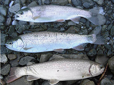 秋のニジマス放流日は朝から本降り
