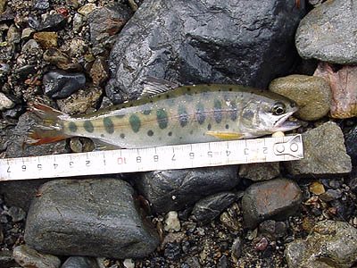 この川の上流部では初めてのサイズ。なんだ居るんじゃない。と思いながら、手にとって写真を取るとお腹から白子が吹き出した。どうやら産卵の時期なのでからだがそうなっているんだなぁと思いながら鮎バックへ入れる。その後小さい場所で暴れたのでアタリが全くなくなった。魚の処理をしたら4本ぐらいの白子が入っていた。今迄かなりのニジマスを釣ってきたが、白子が詰まったのは今迄初めて見た。