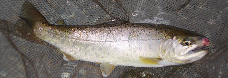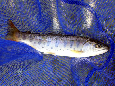 稚魚放流の後育った21cmのヤマメ。顔がとがっている。