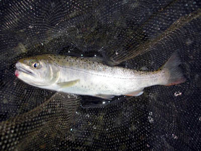 釣果:ヤマメ21cm,虹鱒27cm各1尾