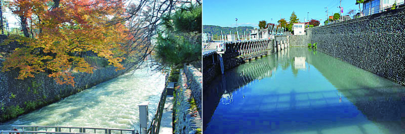 11月18日の羽村堰の様子。水面には青空が映り、きれいに見える奥多摩川。