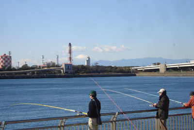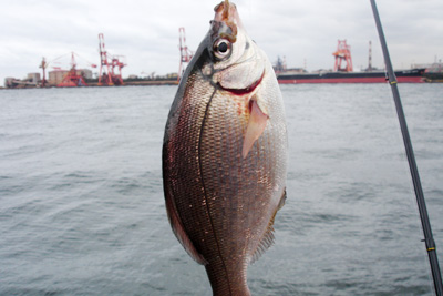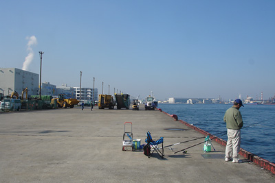 日 時:2009.11.21 AM 7:30〜AM11:40 天 候:晴 気温9〜16℃ 南南東3m/s位 日の出:6:22(入16:32) 潮 位:中潮(満潮 8:00、18:19 干潮 01:00,13:13) 使用竿: シマノ サーフリーダーEV425DX-T、 ダイワ リバティショートスウィング15-300 ダイワ飛竜VjHard2.7m/3号 PRO MARINE 極仙ヘチDX27並継ぎ 餌種類:アオイソメ 仕掛け:道糸4号、ジェット天秤など 釣 果:マハゼ7尾、キス1尾 この日、家族を送った後7時頃から時間がとれたので、遅いとは思ったが海に向かうことにした。この時間だと西公園は無理なので、前回行った埠頭へ行くことにした。餌屋に寄った後現地に向かうと、この前無かったパイロンが駐車スペースに並んでいた。ということで車も少なかったが、うまく止めることが出来た。時間はもう9時を回っていた。東公園側にはもう余地がなかったので目の前の秋スペースで竿を出す。まずカレイ狙いに投げ竿で遠くに放り込んでおく。次に中距離でもう1本投げ、手前も2本短い竿で放り込む。 しばらく反応が無かったが、最初にきたのは遠投の竿で穂先きが微妙に動いたので回収してみると18cm位のマハゼが掛かっていた。形が細長いのと、キスほど暴れないので少し重い程度。その後運良くポツポツと出だした。そのうちに後ろが騒がしくなって30代の港湾係員がきて「船が入るから移動して下さい」とこの辺の釣り人に声を掛けている。最初は左置くの3名が移動を命じられ、いままで空いていた私の隣に入って来た。その老人に挨拶をすると、「午後1時頃まで大丈夫と云われたんだけどなぁ〜」と云っていた。ここは年輩の係員は多めに見てくれるのだが、若い人はかなり厳しく云うケースが多い。私がマハゼを4尾釣った時にその隣の老人は「もう3つも出たね〜、私はまだだよ」と云っていたが、少ししてやっと1尾出たようだ。 調子よく釣っていたら、先ほどの係員が車で後ろにやって来て「移動して下さい」とつっけんどんに云う。ここでは釣りを多めに見てもらっているので係員に反抗は出来ないので、仕方が無いので東公園の方へ移動する。お店を広げていたので、2回往復しなければならない。移動し終わったて釣り人に話をしようと思っていたらなんと、以前釣り場の隣に入れてあげた、「通称カワハギ名人」だった。話をしていると私を他の人に話して入れてもらえるようにしてくれた。日頃より、親切にしていたおかげだからか」世の中はこんな物かも知れない。隙間が広く空いたので、着の身着のままのように、仕掛けが付いたまま持って来た竿の仕掛けを解き、前に良型のカワハギが釣れていたポイントに2本放り込むことが出来た。 話好きのカワハギ名人の隣に入れたので、いろいろ教えてもらうことにした。並んで手前を狙っていると、何やらコツコツとアタリがある。やっとのこと鈎に掛かったのは平べったい魚の暴れ方だたので、もしかして待望のカワハギ?と思って巻き上げるとなんと!またもや「ウミタナゴ」。暫くしてアタリが今度こそ!カワハギだろうと巻き上げるとなんと、また同じウミタナゴこれをもう1回くり返し3尾釣れたが、特に美味しい物では無いので全てリリースした。名人もここではダメだと移動してカワハギを釣って持って来た。しかしサイズは手前側なので、15cm位だった。私はそのあと初めて入れたポイントで久々の18cm位のキスを釣ることが出来た。暫くして掛かったのは、12cm位のこの時期には珍しいサイズだったのでこれもリリース。そのあと珍しく4時頃まで粘ったがその後はダボハゼのみ。名人は18cm位までのカワハギを合計4尾釣っていた。今度またよろしくお願いしますと挨拶をして帰途についた。 |