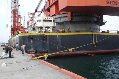 日 時:2009.11.15 AM 7:00〜PM1:10 天 候:晴 気温13〜20℃ 8m/s位 日の出:6:16(入16:35) 潮 位:中潮(満潮 4:08、15:15 干潮 9:35, 22:05) 使用竿: PRO MARINE磯竿5.3m/4号、 ダイワ飛竜VjHard2.7m/3号 PRO MARINE 極仙ヘチDX27並継ぎ 餌種類:アオイソメ 仕掛け:道糸4号、ジェット天秤など 釣 果:ダボハゼ3尾