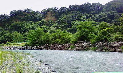 6月に1回行っただけで、今までは毎週行っていたにはいって御無沙汰だったので、気分転換に餌を持って羽村辺りにでも行こうと車に乗り込んだ。朝からも蒸し暑かったのだが、車外気温計で見るとなんと31℃だった。このまま駐車場まで向かうと運良く2台空いていたのが見えたのでそこへ滑り込ませる。まず、川の様子を堤からみてみる。運動場ではダイヤモンドの外側に消防自動車が何台も止まっていたので、きっと分団の野球大会だろう。川岸に歩いて行くとバーベキューの若者達が十人ほど見えた。流れが見える辺りになると、今まで瀬からのぶっ付けでテトラの所でゆったりと流れていたのが、雨量が多いせいかストレートに勢い良く流れている。対岸にはルアーの若者がいたがいつの間にか居なくなっていた。この状態では無理と判断した。水に手を触れたがそんなに冷たくは無かった。途中にある上州屋と自転車店に寄って買い物をして帰ることにした。