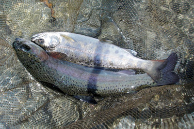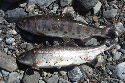 釣果:ヤマメ21cm1尾、ニジマス23cm各1尾