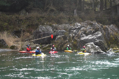 こちらに到着したのが7時半位だったのであっという間に11時になってしまった。なんだか後ろに気配を感じたので振り向くと、話好きの老人に捕まってしまった。普段話し合相手が居ないのだろうか、話が止まらない。こちらも集中が出来ない。それじゃ〜!とホッとしていると、また話が続く。これを3回繰り返した。そのうちにまた人の気配がしたので、振り向くと今度はカヌースクールの生徒等5名。ここから水に入るだったんだろう。暫くすると少し上流から入水して対岸の緩みで講習が始まった。釣りに集中していると、今度は生徒達が流れに逆らって横切ってきた。そのうちの一番年輩が、流れ中央で転覆してしまった。結構パニックになっているようですぐに顔が出てこなかった。そのうちボートに掴まりながらバタ足で私の前を通り過ぎる。・・・・・・・・!?☆△◇!?すかさず女性の講師が下流に回り水平になった中年生徒に声を駆ける「足もう着きますよ!」暫く中年は水平になったまま流れやっと岸に着いた。女性講師は「すみません〜!」と私に言ったので手前で転覆したのは久々見ました。(実際バタ足をした人は初めてだったが(+_+))大事にならなくてよかったですね!と声を掛け人に年を聞くと47歳になるという。「私はもう帰ります」というと、平謝りした。