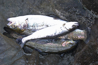 釣果:ヤマメ20cm1尾、ニジマス23,30cm各1尾