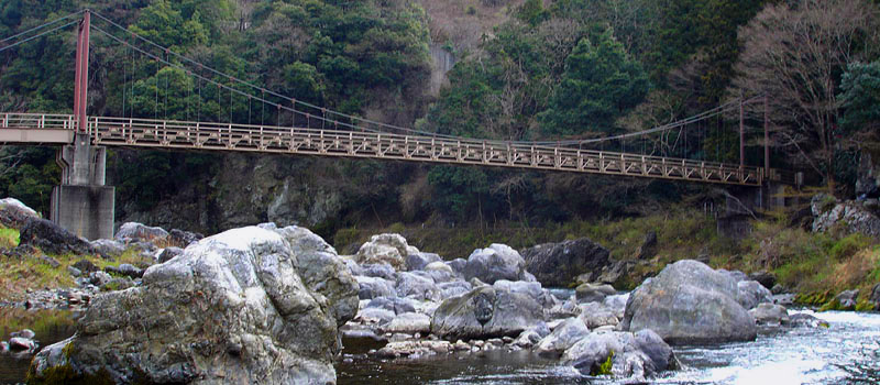 御岳小橋を渡り、先ほどMさんがいた場所に付く。さいわい来るまでに釣り人に入られていなかったのでホッとした。最初は6.5mで暫く手前を流すが、全く反応が無いので7.5mに仕掛けを付け直す。この川幅なら1m長いと遠くはもちろんのこと、手前から広範囲に探れるので多少重いが、必需かもしれない。しかし初のアタリはなんと6.5mで探っていた距離で出た。仕掛けが自然な流れから妙な動きをした時に合わせるとかな重い手ごたえがあった。実は余りにもアタリが無いので鈎をイクラを付け難い位のサイズの1号にしてあった。当然小さくなると軸が細くなる。対応するとかなり大きいらしく、胴調子の竿が元の少し上から全て曲る。急に奥に走り出した時、ス〜と軽くなってしまった。仕掛けを手元に寄せるとなんと鈎はそのままだった。鈎を指で曲げてみると、以前「ゼロヤマメ3〜4号」に見られた彎曲部分の伸びが見られた。これじゃ大きいのが掛かったら外れる!と急きょ少し大きめの軸の太い物(OWNERマタギ)に換える。
