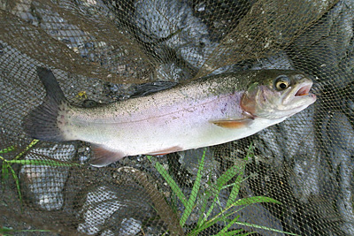 やっと出たのは24cmのニジマス