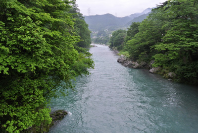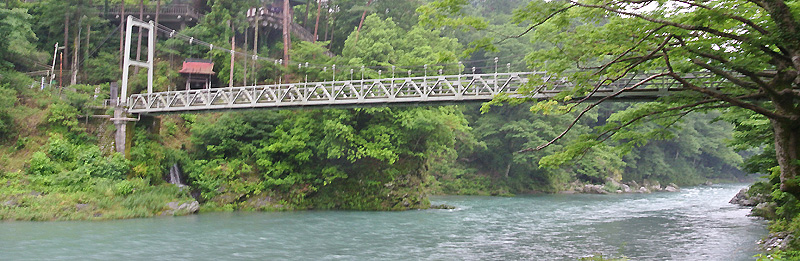 7月も中旬になり、今月は初めての釣行となる。天気予報ではもう直き梅雨明けになるだろうと言っていた。相変わらず痛風の腫れが完全には治っていないのだが、痛みは殆どなくなったので運動を兼ね、川へ行くことにした。しかし今回は起床が午前6時半と言うのんびりペース。歩けて広範囲に釣れる澤井を選んだ。なんだかんだやって支度をして出かけたら現地到着は8時を回っていた。今回はウェダーを履かないでコッパンとスニーカーという軽装で釣りをしてみることにした。予報では曇りだったが湿気が予想されたのでドライタイプのTシャツに着替えることにした。寒山寺側から山道を下る。遠くに見える川は濁って見えた。 寒山寺を過ぎ長い石段を降りていく。開けた先の川霧の奥に釣り師が見えたが、鮎師のようだ。今回は街歩きのような軽装なので、行く場所が限られる。川を見ながら遊歩道を進むと、数年前の大水の時に流されたトイレのスペースでなにやらご夫婦で収録機らしき物にヘッドホンを繋げて川の音を収録していた。いつもの渓相を想像していたのだが、かなり水位が上がっているようで、場所が確定できなかったがとにかく川に降りることにした。 以前尺上を釣った場所に何となくここだと確信して、竿を振ることにした。ゴアテックスとはいえ、普通の靴なので足場が限られるので釣りづらい。沖目を狙ってみるとグッグっときたので竿をあげてみると、ブドウ虫がちぎられていた。これは居る!と何回かトライする物の無反応だった。足場を上流へ移動するがそちらのポイントも反応がなかった。 伸びて繁茂した草をかき分け一旦遊歩道に上がろうとすると、上に被さっている太めの小枝に穂先あたりが絡まってしまった。細い枝なら天上糸の太さで引っ張ってきるのだが、3mm位もあったので無理は禁物!絡み具合を確認し解くことができた。やはり繁茂している場所では手を抜かずに畳んで仕掛けを巻いた方が無難と今更再確認する。遊歩道に上がって鵜の瀬橋下に降りる場所を探すが、軽装のため無理はできない。足場を探して降りることにした。湿気が多いせいかエッジの効いたスーッと伸びた草には露がたくさん付いていた。 ここでは何回も竿を出しているが、水量が多いため弛みがなくなって強い流れになってしまっている。 |