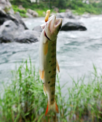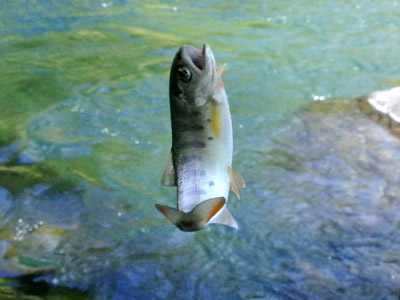 上流に移動して奇麗な14cmのヤマメが出た