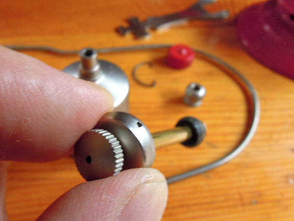 Miniture Model 200Aの各部 トップへ 1/2モデルの各部拡大画像です。バルブホイール、ポンプ、フィラーキャップ、点火レバー、ベンチレーターのナット、グローブなどかなり良く出来ています。 Miniture Model 200A 部品を取り外す トップへ