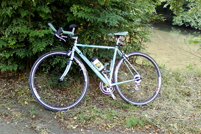 さて、ロードの最初は、現在は少ない耐久性のあるクロモリ製「ビアンキ・ウイングミラージュ」です。前後ホイールは軽量のCAMPAGNOLO ZONDA(バテッドスポーク)、ハンドルはブルホンバー、クランク・スプロケットはケンタウルに変更。空気抵抗が減るプロファイルのDHバーを装着してあります。ホイールとハンドルを交換しただけでかなり乗り易くなりました。