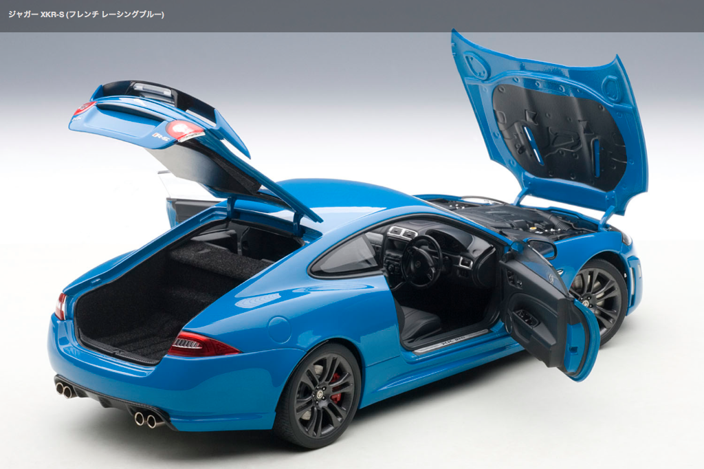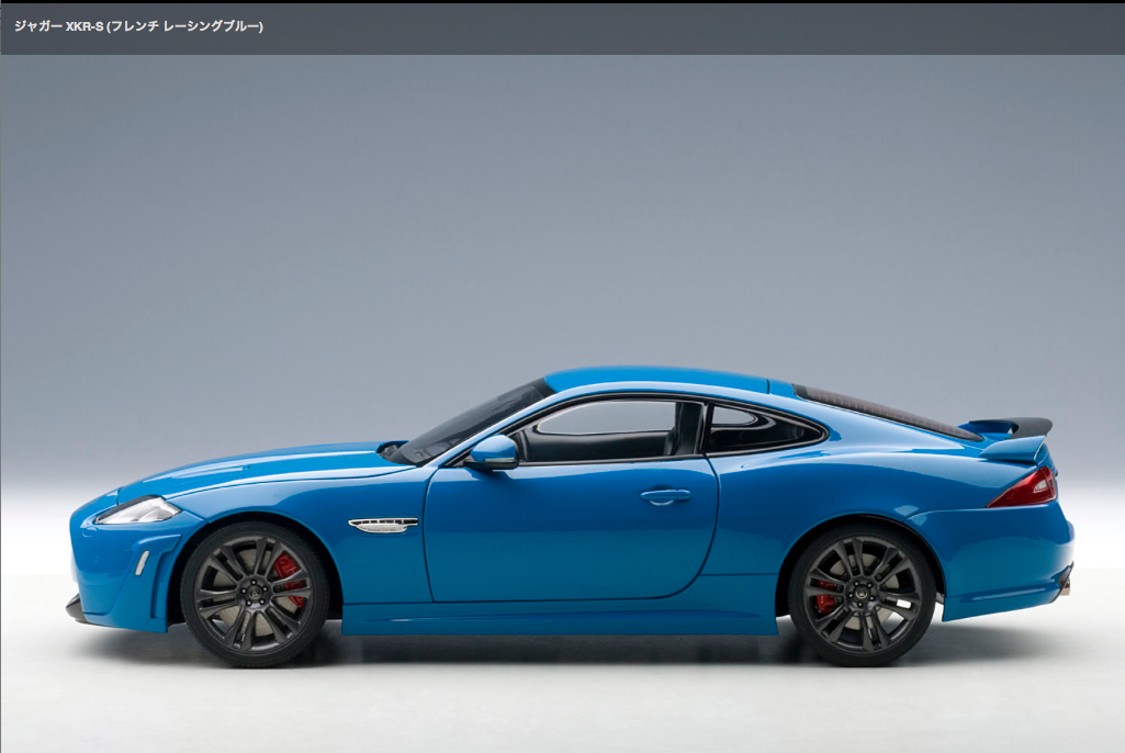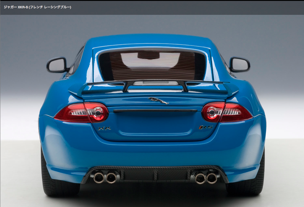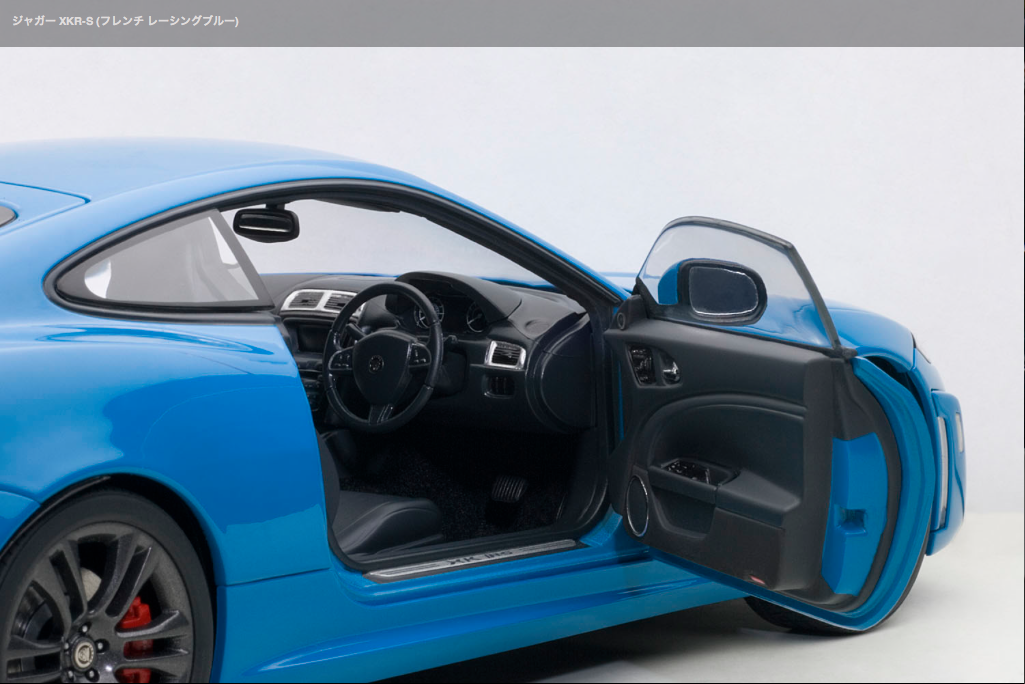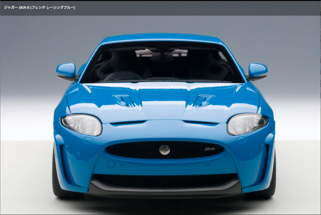 Auto art 1/18 MinCar ![]() ジャガーXKR-S(フレンチ レーシングブルー) 2011年のジュネーブモーターショーで発表された『ジャガー XKR-S』はサーキットなどの高速走行にも対応するため、XKシリーズで使われるアルミボディに新しいジャガーのデザインを取りまとめるイアン・カラムによる大幅な空力的リファインが加えられ誕生。最高出力550PSの改良型スーパーチャージャー付き5リッターV型8気筒エンジンを搭載し、優れたハンドリングと最高速度300km/hを記録するジャガー史上「最強かつ最速」の量産型スポーツカーです。フロントバンパーサイドのインテーク、リアのウイングタイプスポイラーやディフューザー、20インチアルミホイールの採用などにより最強を名乗るに相応しい迫力のスタイルが与えられています。 (写真・記事:AUTOart 商品サイトより)1※AUTOartサイトで見る ディーラーで実車を見る