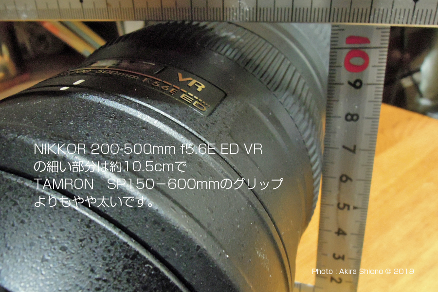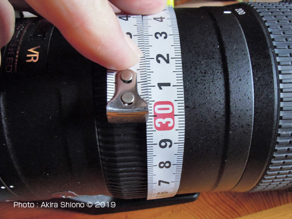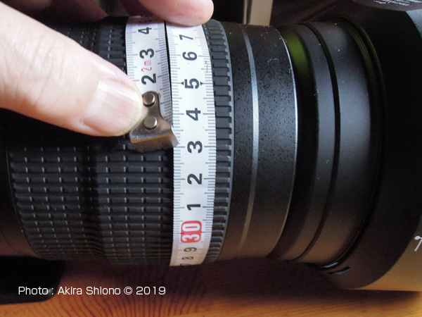 フォーカスリングの周囲の実測値は、ニコン200-500mmの太い方で、約30cmありました。