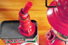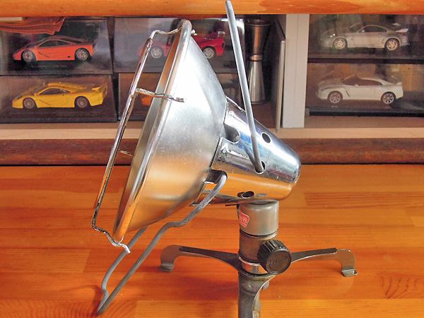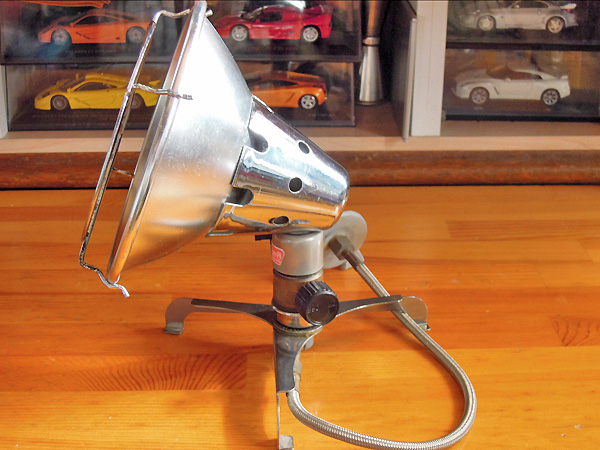 スタンド部分は、右下の写真の用にパラボラとコーンのつなぎ目にある穴?に差し込みます。もう一つの持ち手は、コーン状のメッキ部分の丸い穴に差し込みます。スタンドは開いて差し込むだけになっていますので取り外しはカンタンです。スタンドの一部は、パラボラの部分に当たってそれ以上下がらなくなっています。 クイックヒーターの効果 トップへ