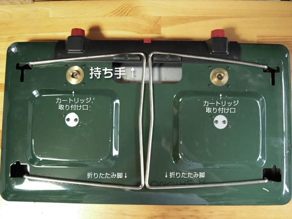 また、ツーバーナーは五徳が横いっぱい大きいのと、カセットコンロの様に火のそばに燃料がありませんので、鉄板も可能(高温注意)です。またトップカバーは取り外せますので、パエリアなどの大きな鍋も乗せられます。 その他のLPガス2バーナー 移 動: 安定した調理ができるLPガス2バーナー コールマンパワーハウス LPツーバーナー(初代) ツーバナーの組み立て ガスボンベの取付 本体表裏 リンク: ホワイトガソリングッズ 夜のアウトドア・グッズ ナイスなグッズ キャプテンチェアーの修理 ガソリンランタン ガソリンストーブ 便利なLPガス機器 地面に合わせたペグ選び