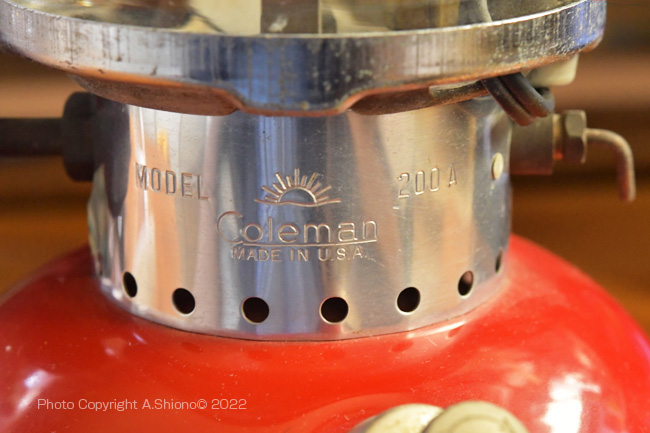 こちらのU.S.AColeman200Aは、1958年4月に製造された物です。別ページでご紹介しましたカナダ製の200と基本的にはの違いがありませんが、カナダ製は、バルブホイールの右側にフィラーキャップ、左側にポンプが有ります。 Coleman200A