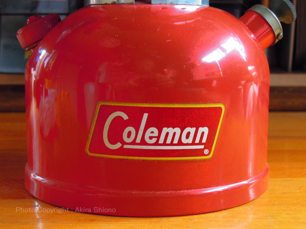 本体の色は先先代の朱がかった赤よりは濃い紅色に近く、先代のバーガンディーより明るくなっています。タンクのロゴは白い縁がありColemanの文字の下には、「PATENTS PENDING(特許取得中)」の文字がデザインされています。 U.S.A Coleman Model 200A 1977.11 トップへ ![]()