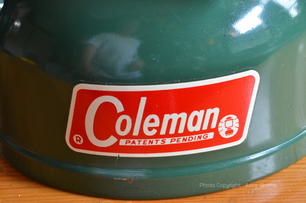 ![]() 五徳がかなり高い位置にあります。タンク側面には、THE SUNSHINE OF THE NIGHTの刻印があります。 1952年に作られた、大型のガソリンストーブです。この頃のストーブやランタンには右の写真にありますように、“THE SUNSHINE OF THE NIGHT”の刻印と会社の当時のロゴが刻印されて時代を感じさせてくれる素敵なデザインだと思っています。型番は500番と呼ばれています。この500系のシリーズとして、タンクがメッキの通称“SPEED STAR”や、ゴトクが更に大きく丸形になったものも発売され、色が明るいCanada工場のものもありました。