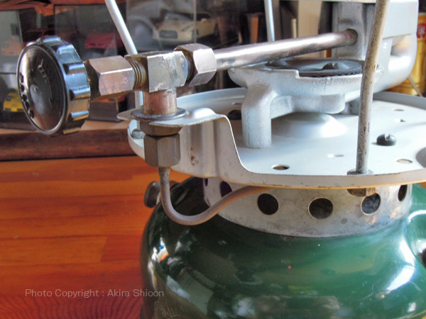 ![]() Coleman502以降の製品よりかなり小型の燃料キャップとポンプレバーでネジ2本で留められています。 Coleman 502 U.S.A '68 トップへ