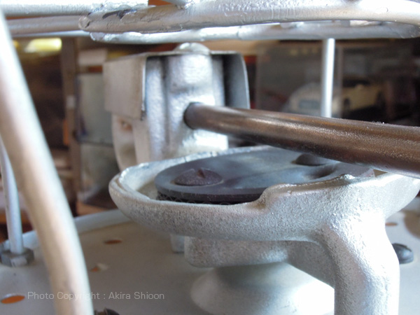 ![]() メカ丸出しのデザインでバーナー部は鋳物で作られています。右はバルブホイール