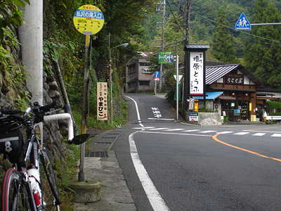 進路は武蔵五日市方面 トップへ このところ悪い生活習慣が付いてしまって体重が上昇傾向してしまいました。これはマズイ!と先週は奥多摩駅往復をやってみましたが、まだまだ体重の戻りが悪いので、思いきって出かけることにしました。長距離は前回と同じフルカーボンの軽いものをチョイスしました。スピードは程々に玉川上水沿いを進みます。途中の「玉川拝島橋」で拝島駅南口に出る舗装路を開拓しなければと、方角的に行きそうな道を選び、拝島駅南口に出ることが出来ました。そこから睦橋通りを西に進むと高低のある広い道が続きます。気がつくと春にMTBでやって来た山田大橋付は知らぬ間に通り過ぎてしまっていました。暫くするとなにか懐かしい風景が遠くに見えました。遥か離れた場所からちょうど止まっているオレンジ色の電車がちょうどホームに入っていたからです。 約10年振りの武蔵五日市駅 トップへ 前回来たのは2001年の8月14日だったので、もう9年は経ってしまいましたが、街は以前となんら変わった感じはありませんでした。市街に入ると信号が多いので歩道をたびたび走ります。五日市警察署を過ぎ黒茶屋の看板がある分岐点に着きました。ここを右に向うと檜原街道です。アップダウンがありますが、ここからだんだん檜原村らしい景色が続きます。途中見たことが無い道路を斜に1本支柱を渡した変わった橋がありました。(ちなみにこの近くに秋川温泉 瀬音の湯があります0地盤や道のカーブの関係と観光として変わったデザインにしたのでしょうか。暫く振りだとかなり変わるもんだなぁ〜と感心して進むと、右側に数年前に完成した「秋川渓谷瀬音の湯」と云う看板が出ていました。街道には土産物屋や民宿などがポツポツと点在しています。片側が山に迫られ、もう片側すぐ川のなっている五日市檜原村ならではの景色です。暫く走ると見かけない建物が見えました。良く見ると檜原村役場と書いてあります。防災上の指令拠点と考えれば、耐震基準に沿った建物なのでしょうが、今までの木造の方が景色にマッチしていた気がしました。そのうちに丁字路に着きました。左は上野原・数馬方面で右は藤原・大沢と表示してあります。今回はこの信号を右折して払沢の滝に向います。 久し振りの払沢の滝 トップへ