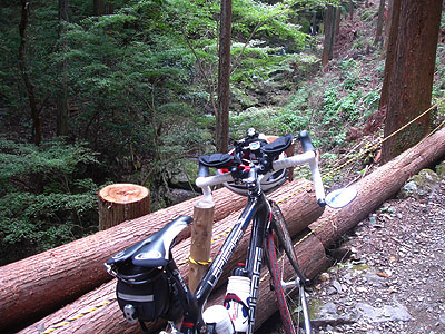 ここ来るまでは上りが多かったので、帰りは楽な下り坂が続きます。ロードですと50km/h位出る可能性がありますので、タイヤが細いため安全を優先して無理にスピードを時速40km/h以下に押さえて走ることにしました。山沿いの街道を過ぎ、十里木の信号に出ます。ここから左に上ると、「秋川国際鱒釣場」があります。さらに上って行くと『御岳山の七代の滝』に行けます。夏場は薄着なので、アブなどの危険な虫が襲ってきますのでおすすめ出来ません。 |