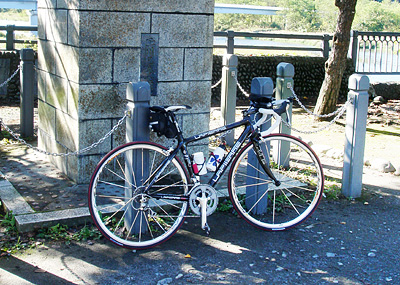 2000年頃、電車で輪行して到着した奥多摩駅ですが、すでにあれから10年。あの頃には奥多摩駅往復は無理と思われたのに、とうとう56歳(当時2010年)遂に達成できました。駅前で写真を撮り、暫く腰掛けて休むことに。懐かしい東側の広場?には、私が10年前にやっていた『輪行』のカップルが見えました。自転車ブームが来ている証拠なのでしょう。10月を過ぎていましたが、日射しが強かったので日陰を選んで10分位休みました。