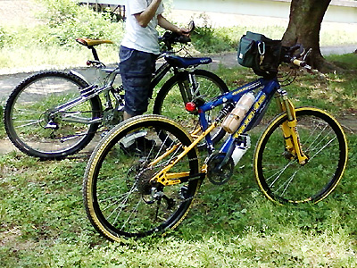 あまりに暑いので今回はアルミ色の自転車にはサドル下にボトルケージを装備した。