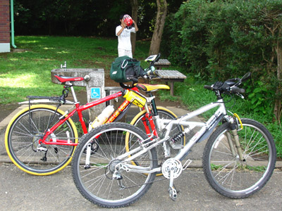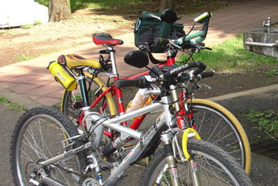 毎週土曜日は午前中に、少しだけ体を動かし緑を眺める習慣をつけている。最近メリダのアルミ色の後輪の調子が悪い。一応大丈夫な事を確認してから出かける。こんかいは少し前にリアキャリアを装備した、XC−RACEにナビをくっ付けて来た。メリダの方はシート後ろに付けたボトルケージが持った拍子に溶接が取れてしまったので手持ちの太い物に取り替える。野川沿いを走り、今回は武蔵公園内を通り野川公園北に出て南の公園内を走る。暫くするとメリダの後輪がまたもやトラブル!仕方が無いので木陰で修理。そろそろこのタイヤもビード部が傷んできたので、タイヤごと交換の予定。やっとの事で携帯ポンプで低圧に入れ帰途に付く。途中南口の坂で工事中。歩行者用の通路を通って行くと、前にいた人が無理に向いから来た人を避ける為にとっさに止まった為にビンディングを外す事が出来ずに転倒してしまった。この日はついていなかった。