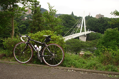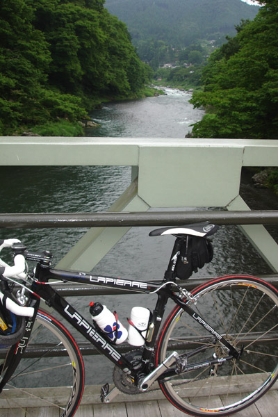 そのうち空から雨がポツポツと落ちて来たので、楓橋の上で記念撮影をして寒山寺脇の急な上り坂を自転車を担いで吉野街道まで上がる。本来は御岳がもうすぐなのでいけば良かったのだが、雨と雷(カーボンの車体なので)が気になって家路に付きました。