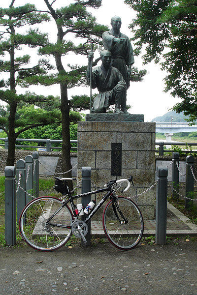 天候が午後から崩れるようなことを予報で云っていたのが影響してか、ここに到着してみると自転車のレーサーは1人しか見えませんでした。さらに見回すとクロスバイクの中年の姿がありました。自転車を玉川兄弟の像の所に置き、写真を撮ろうとすると、「撮りましょうか?」と還暦越えの人が声を掛けていただきました。折角ですが丁重にお断りしました。
