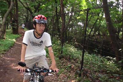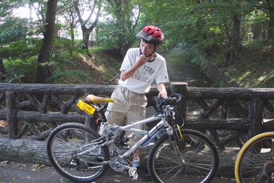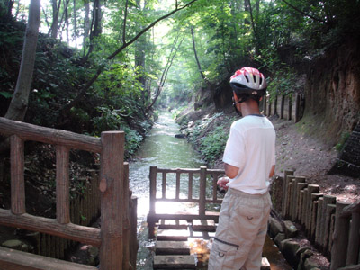 時間を持て余した長男とサイクリングで出かけるのは、せいぜい往復18km程度。真夏の時期なので、涼しくて距離を稼げるコースとして「玉川上水の脇道」を通り玉川上水の取水口のある羽村堰方向に行くことにしました。 意外にタフな長男 トップへ まぁ、マイペースで走っているのだろうか楽しんでいるようです。裏道を通り、拝島駅北側に出て、16号は危ないので裏道を通ることに。そこで牛浜駅に出て福生駅方面へ。釣りの時に通る裏道を使い、旧奥多摩街道へ進みます。前回、ここを通った時は裏道を使ったがロードで走りにくかった印象が強かったので何故かMTBなのに反射的に国道を走ってしまいました。途中スポーツセンター入口から裏道へ入ります。実は自転車の場合国道は登坂になっていますが、こちらは夏は涼しい木陰の下り坂になっていて堰まで続いているからです。こちらは近所の散歩コースになっていますが、この日はお盆休みで人陰はまばらでした。時間は掛かりましたがすんなりと羽村の堰まで着く事ができました。記念撮影をして、ほぼ来た道(玉川上水駅から線路沿いを走った)を通り帰途に着きました。 |