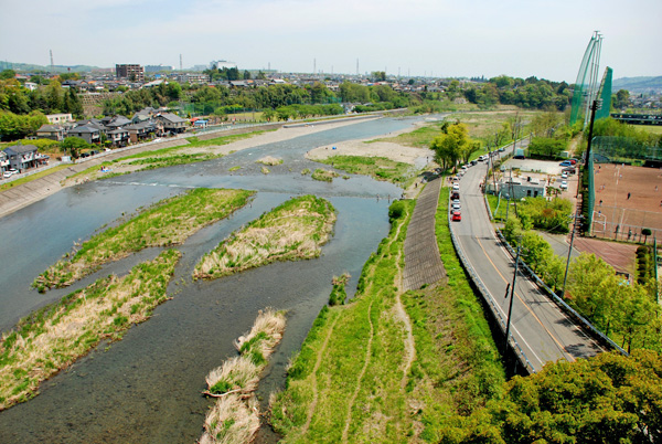景色は枯れ草ばかりの3月と違い、地形がのっぺりとしている秋川下流ですが、流れは緩やかで緑が増え綺麗に見えました。