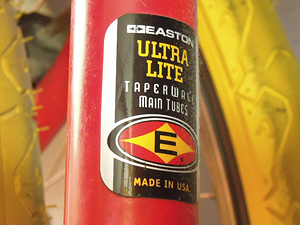この自転車はマウンテンバイクなのですが、フロントサスはSIDのRaceで、フレームはイーストンのウルトラライトを使用しています。本体重量(ペダル無し)で9.8kgという、とてつもなく軽い車体です。