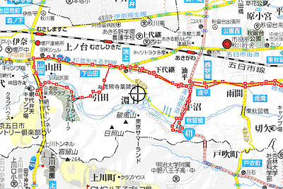 拝島駅近くになり取り付けてあるナビを良く見ても、渉れそうな道が表示されません。拝島駅は、西武線とJR青梅線(ここで五日市線に分岐)、西武拝島線が入ってくる大きな駅です。通常は、五日市街道から東京環状(通称:16号)に出て遠回りしなければ行けませんが、線路を越える街道のためかなりの勾配があります。